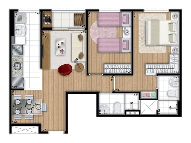 - 2 DORMITÓRIOS SENDO 1 SUÍTE